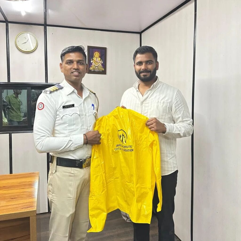 पोलिस बांधवांना पावसाळी रेनकोट व बालेवाडी पोलीस स्टेशनला TV भेट